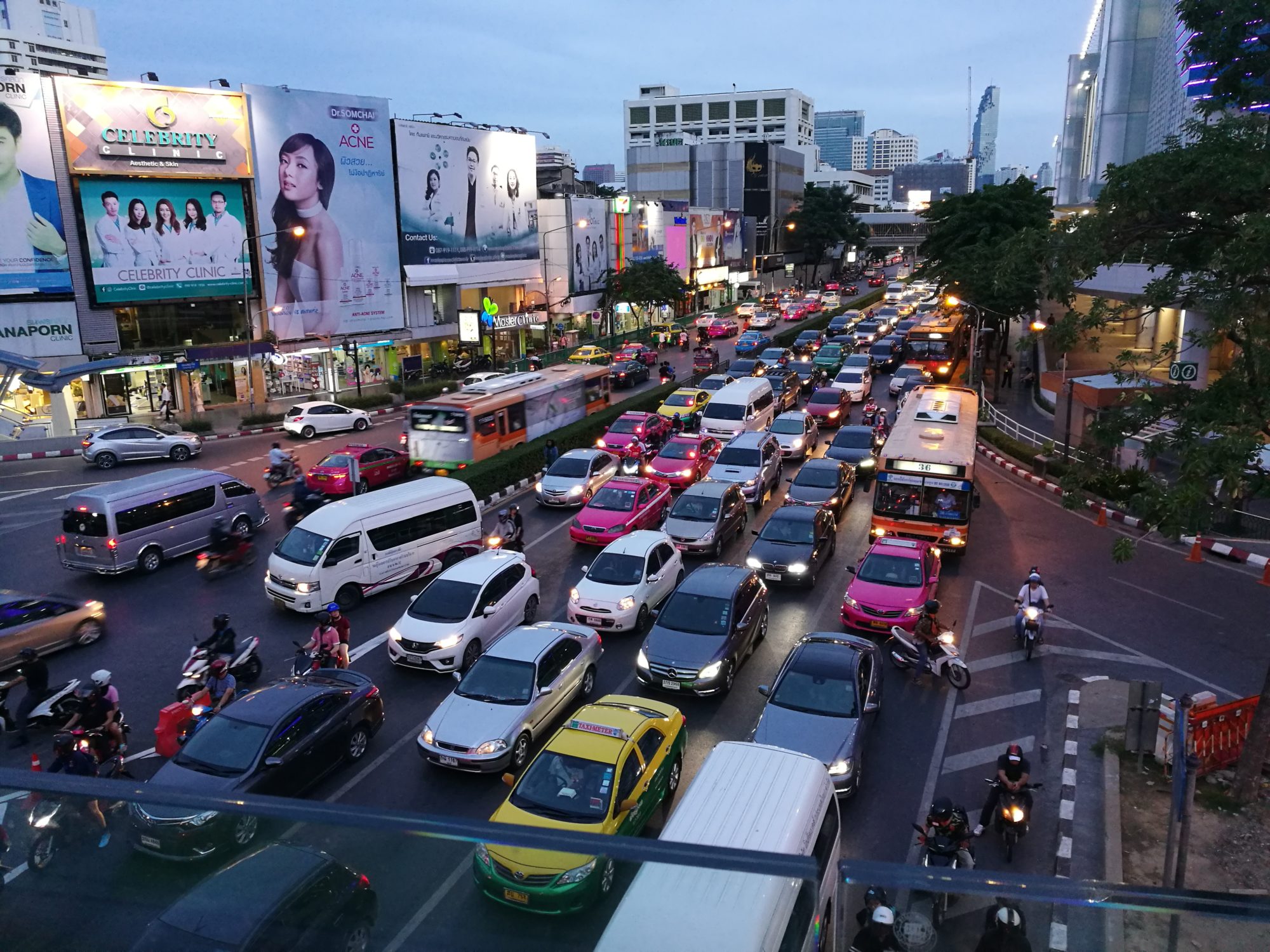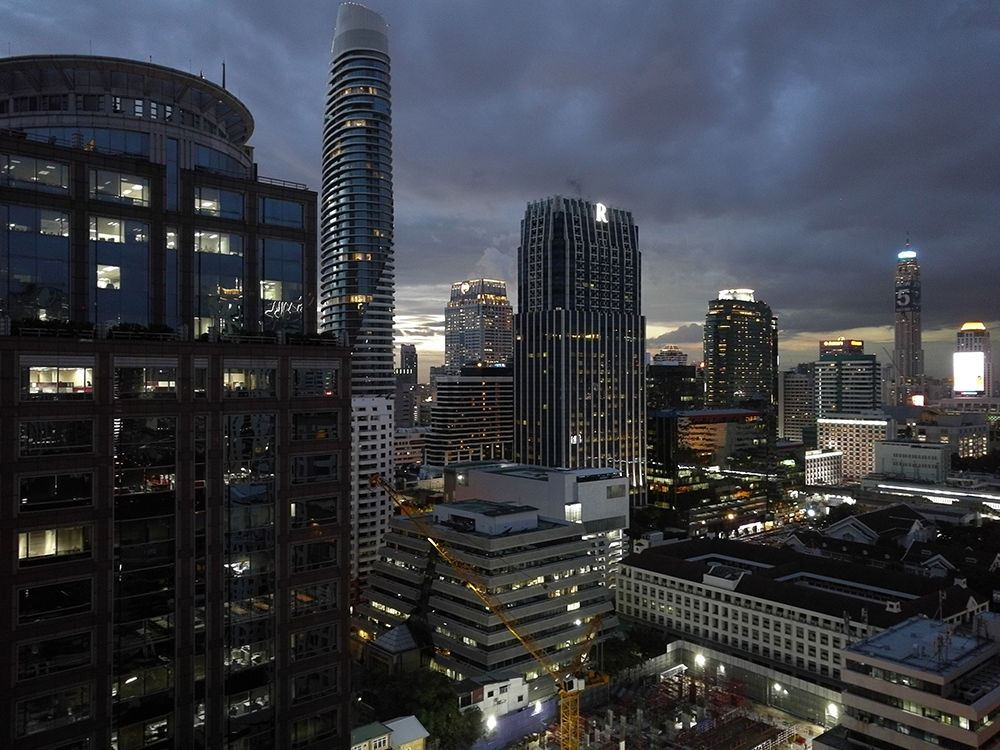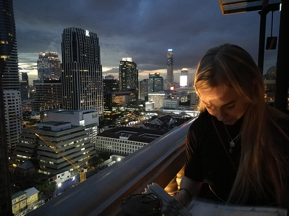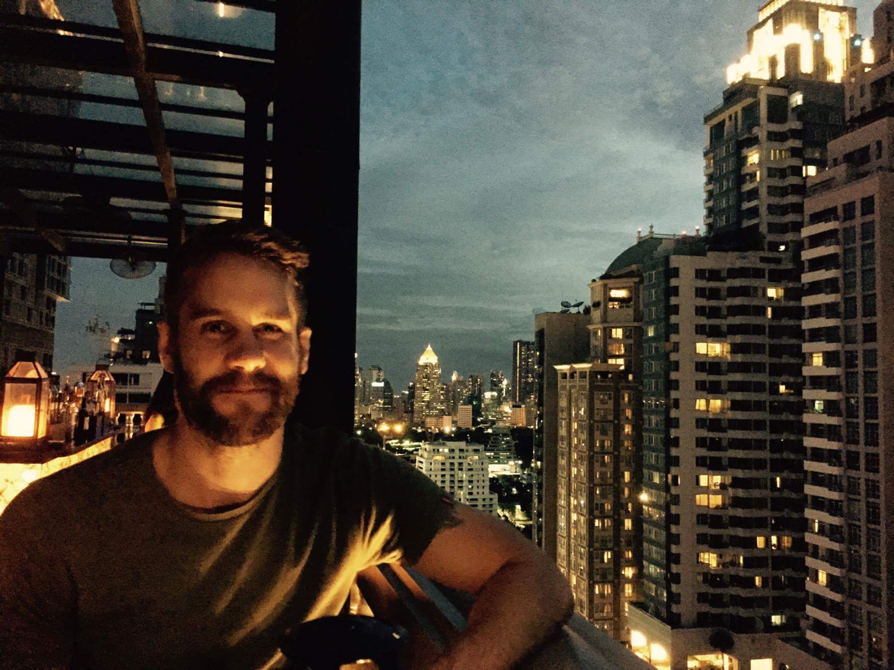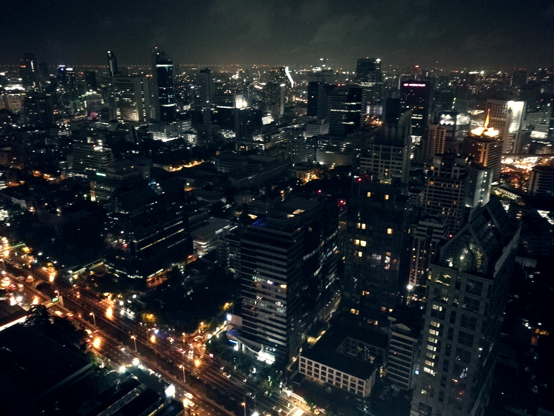 Dag fyra var det dags att bege oss till nytt boende i ny stadsdel, den här gången närmre just Khao San Road. Första dagen där var vår plan att uppleva solnedgången från taket av ett av de högsta husen i Bangkok, ett ställe som kallas Vertigo. Tyvärr kom vi dit för sent och fick istället uppleva solnedgången från vår taxi. Vyerna var däremot imponerande även utan solnedgång och drinkarna goda. Efter en drink var begav vi oss till våra hemtrakter igen och spatserade runt i området kring Khao San Road.