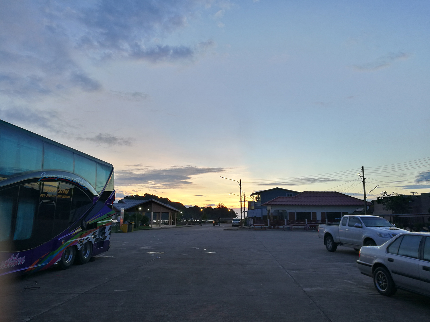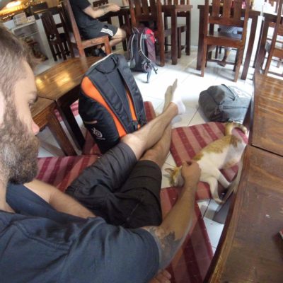 Dag sju bestod mestadels av packning, utcheckning, äta, hämta biljetter, vänta och äta igen och sen hoppa på nattbussen som skulle ta oss till Chumpon där vi sen skulle ta båt till Koh Tao. Bussresan tog ca 7-8 timmar följt av 3-4 timmars väntetid i något som skulle föreställa en hamn och väntehall, innan båten kom. Båtresan tog ytterligare 3 timmar. Sen var man framme i vad som ändå får kallas för ett paradis. Där är vi nu och här har vi nog bestämt oss för att stanna lite längre än tänkt från början. Vi trivs båda bra, folket är trevliga, platsen mysig, vacker och erbjuder bra dykning samt vandring. Mer om Koh Tao kommer i nästa inlägg.