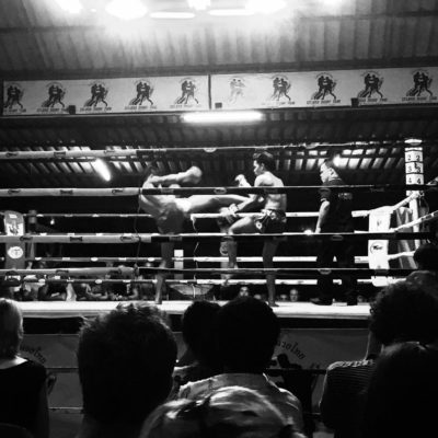 Thaiboxningen i Thailand håller väldigt varierad kvalitet kan vi också konstatera. Från att ha varit på en av de mer prestigefulla arenorna i Bangkok (Lumpinee) till att se lokala galan på Koh Tao av Island Muay Thai. De första två (kanske tre, fyra eller fem) matcherna av sju satt jag och Josefin mest och tittade på varandra i förundran. Vad håller de på med? Har de tränat kampsport? Var det allas debuter? Det var vilt, det var vevande, det var ingen kontroll, fullt adrenalinpåslag och ”avslut” i varje match. Oftast i form av att någon kände att de inte ville vara där och gick ner på något som knappt träffade när adrenalindumpen började komma. De sista två matcherna på galan var bra däremot.
