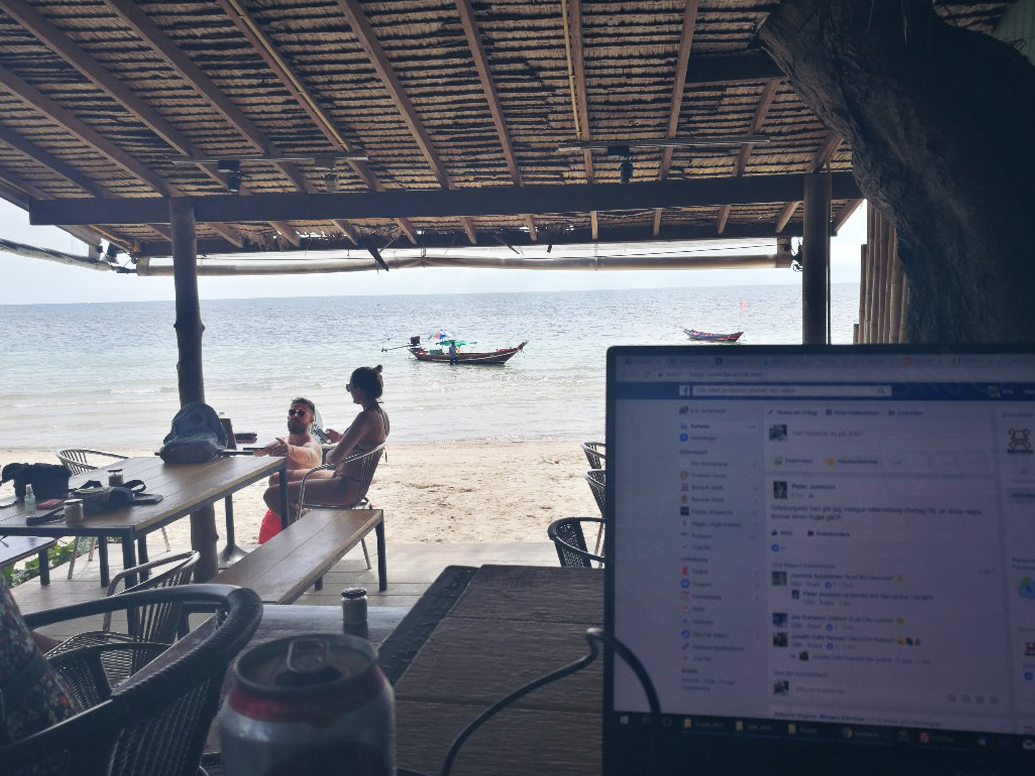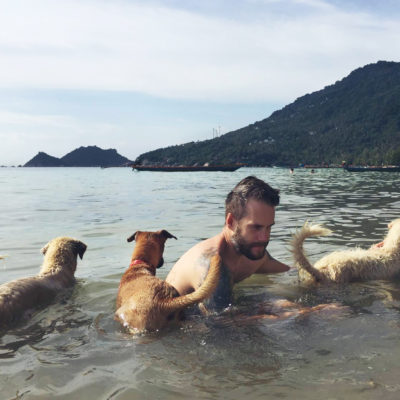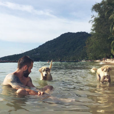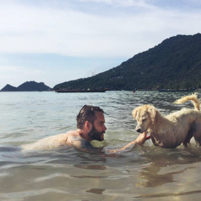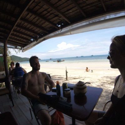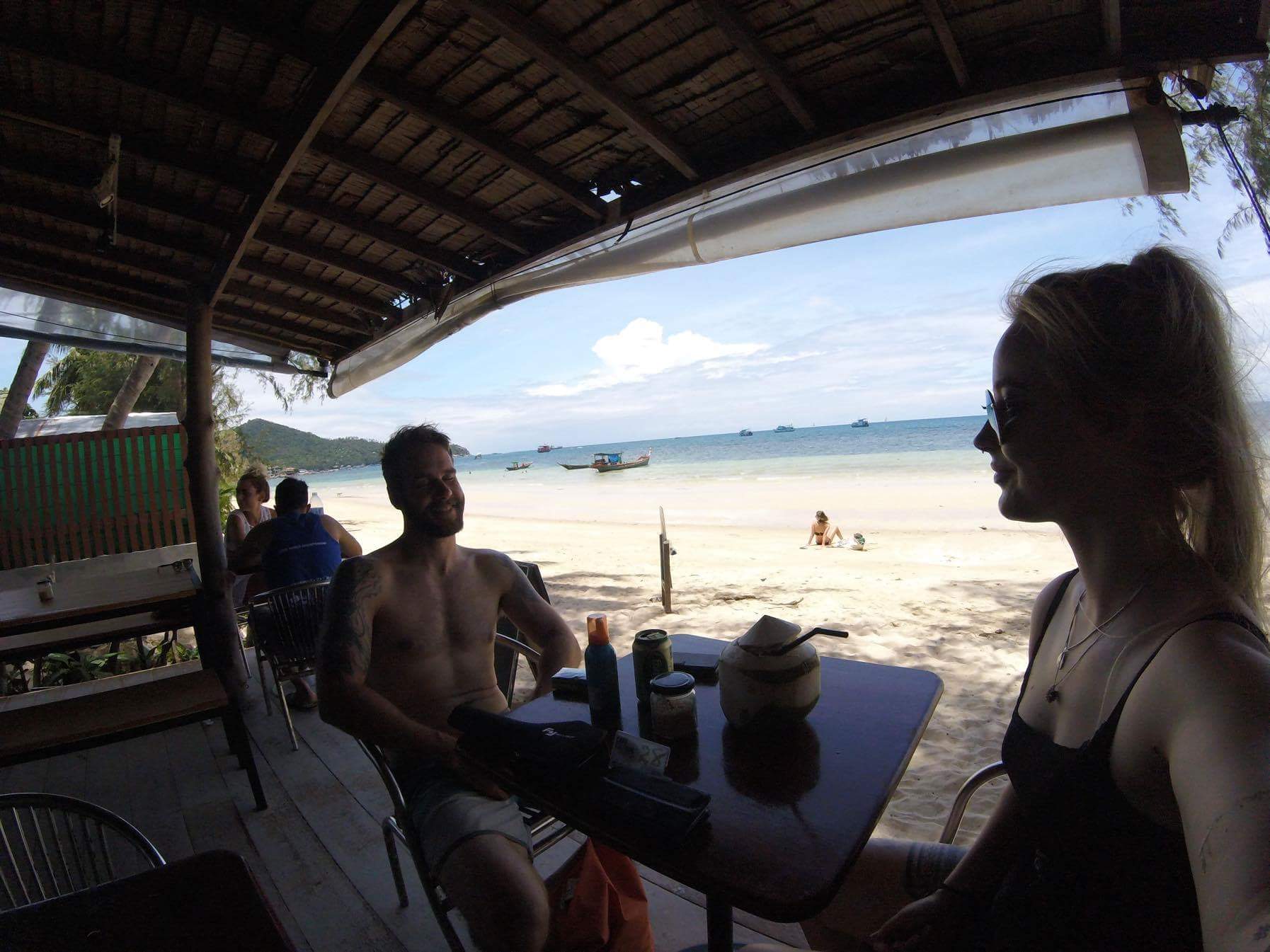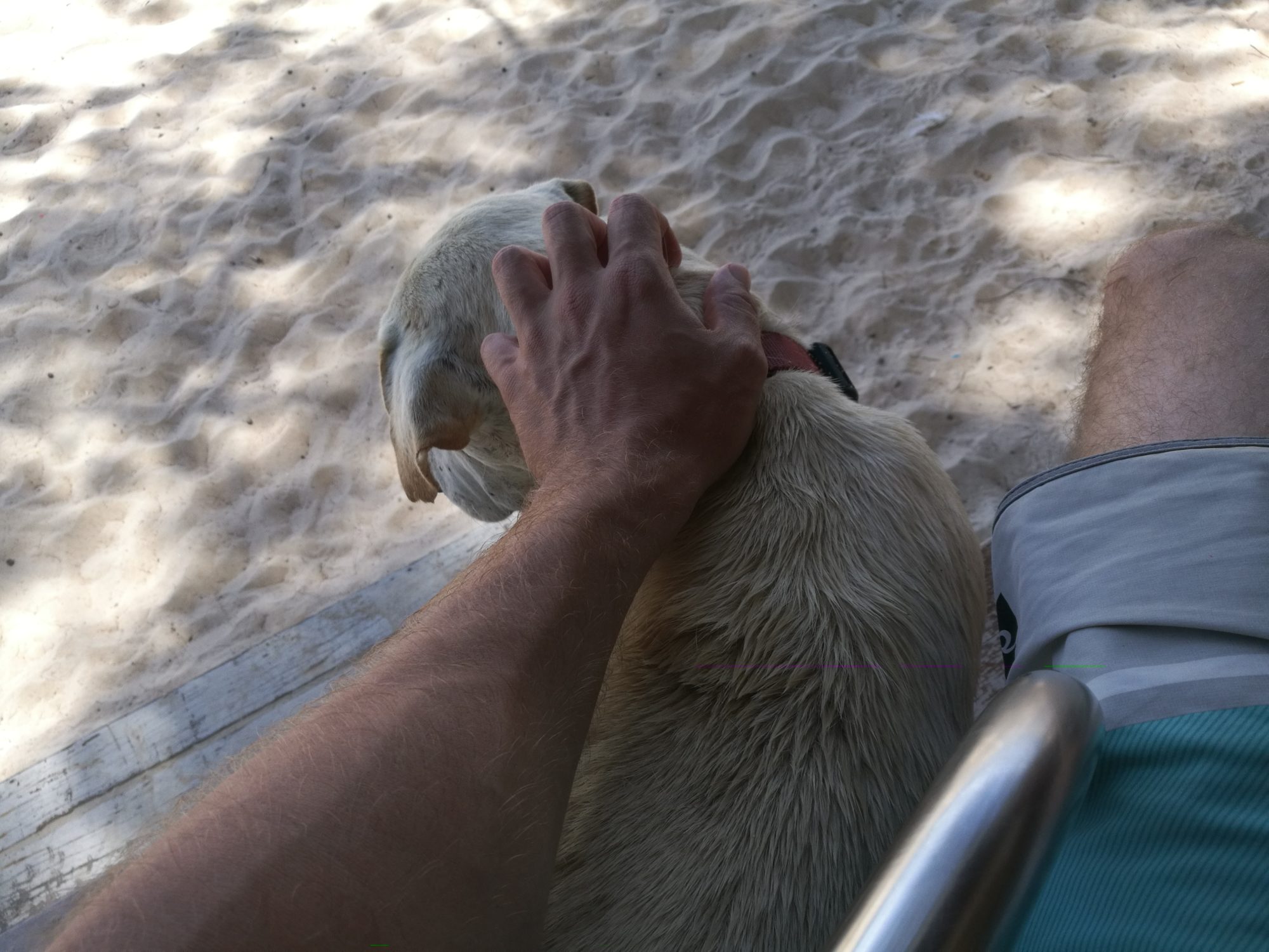 Utöver att dyka och äta så jobbar vi också. Våra arbetstimmar spenderas oftast på Café Culture. Ett café som ligger på stranden, 10 m från vattnet. Det är en ypperlig arbetsplats. Schysst mat, nära till ett dopp när man känner för det och svårslagen utsikt. Just nu har solen precis gått ner, det är en magnifik solnedgång varje dag. Här kommer en liten video från en dags paus där vi fick besök av Doug the Dog. Det är iaf vårt namn för honom, kärt barn har många namn.