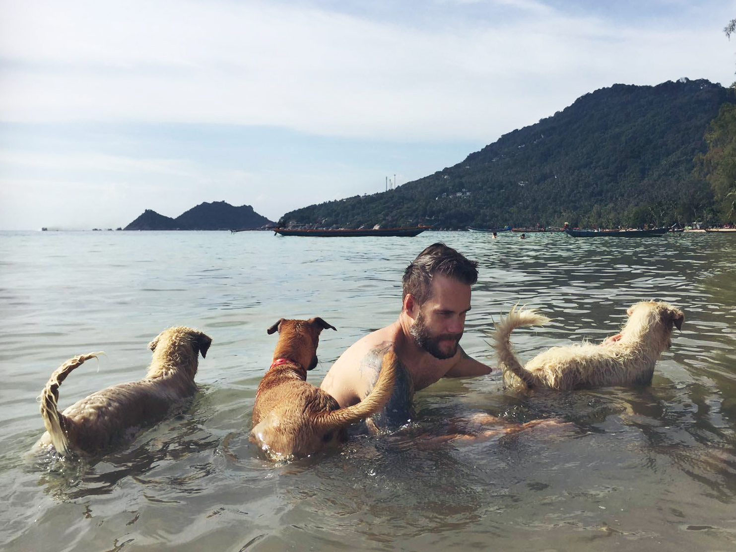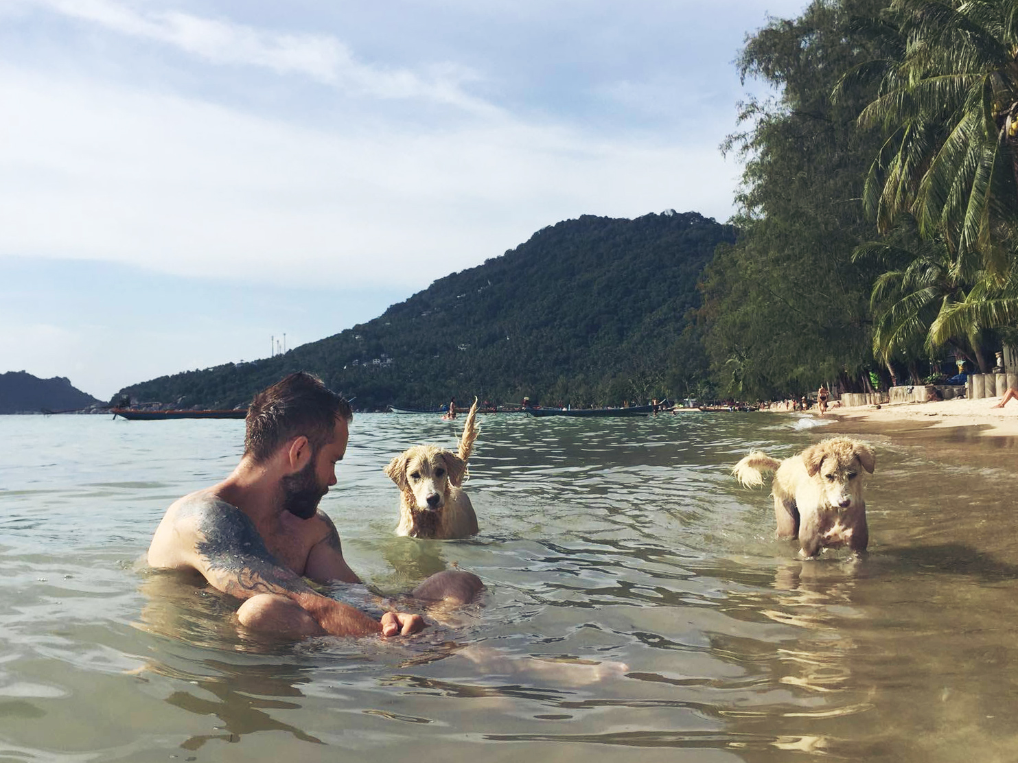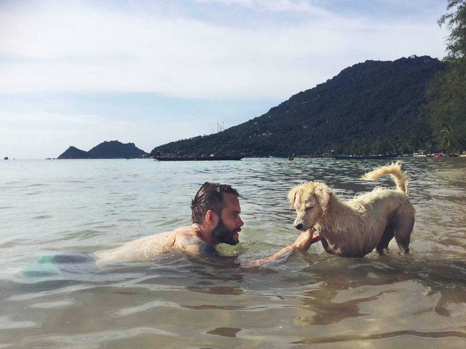Utöver att dyka och äta så jobbar vi också. Våra arbetstimmar spenderas oftast på Café Culture. Ett café som ligger på stranden, 10 m från vattnet. Det är en ypperlig arbetsplats. Schysst mat, nära till ett dopp när man känner för det och svårslagen utsikt. Just nu har solen precis gått ner, det är en magnifik solnedgång varje dag. Här kommer en liten video från en dags paus där vi fick besök av Doug the Dog. Det är iaf vårt namn för honom, kärt barn har många namn.